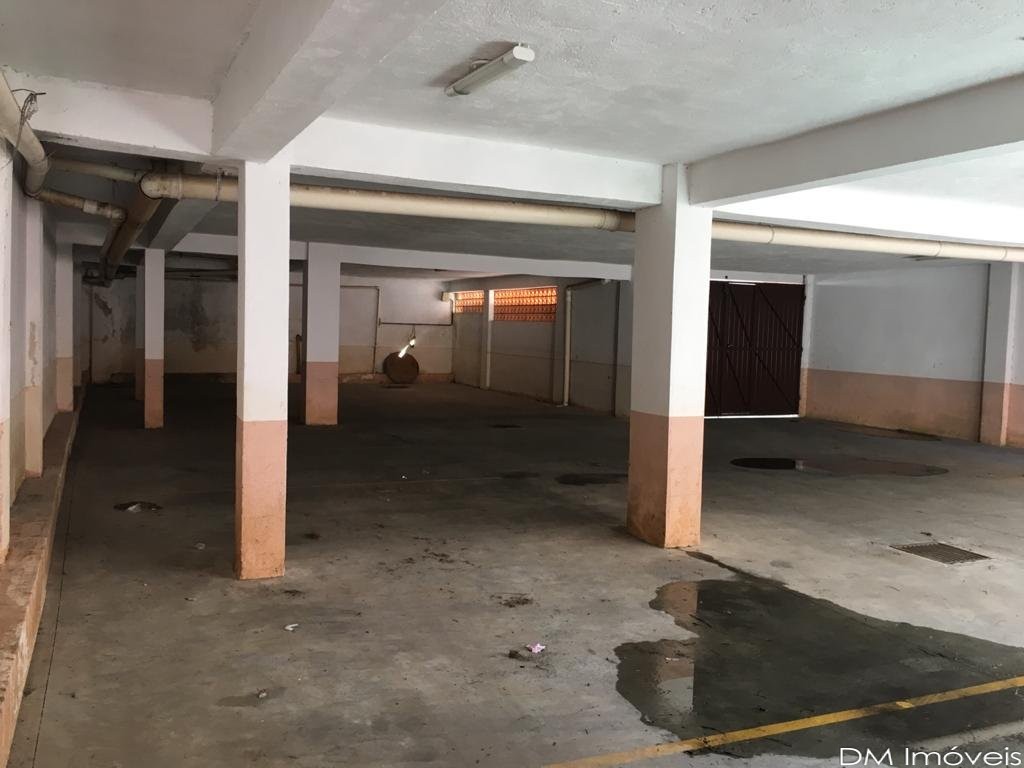 Garagens cobertas no térreo com 350 m². Mais de 12 vagas de garagem.