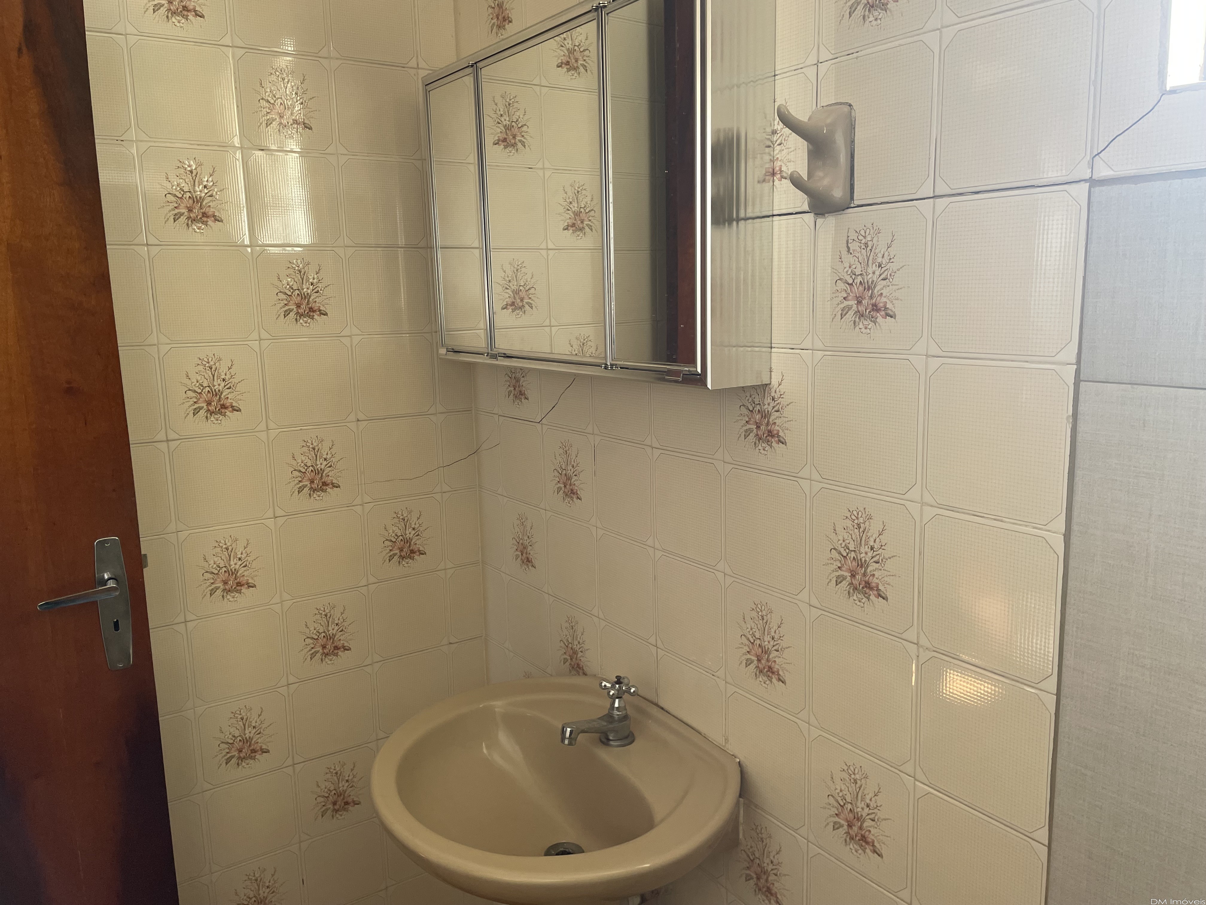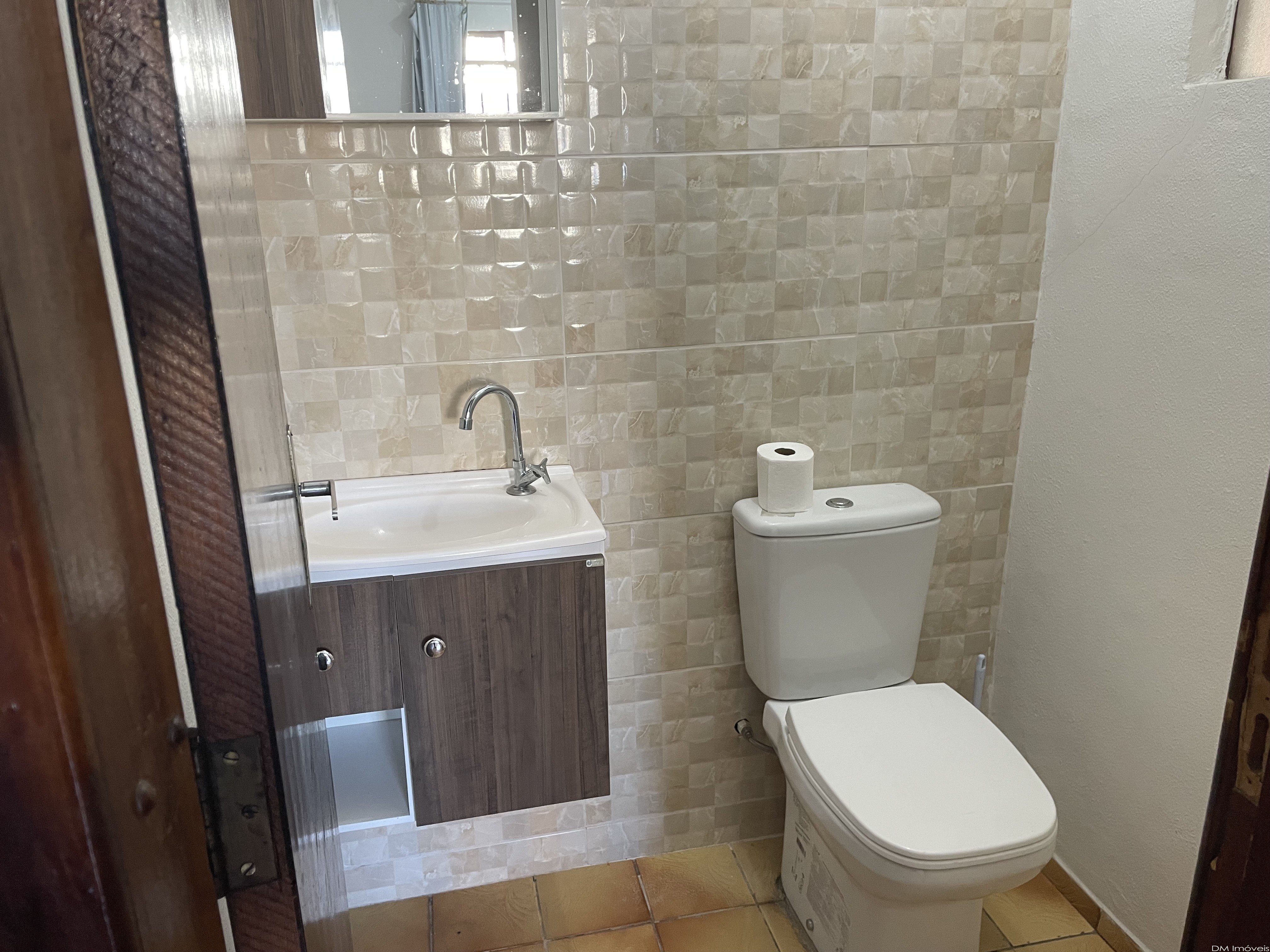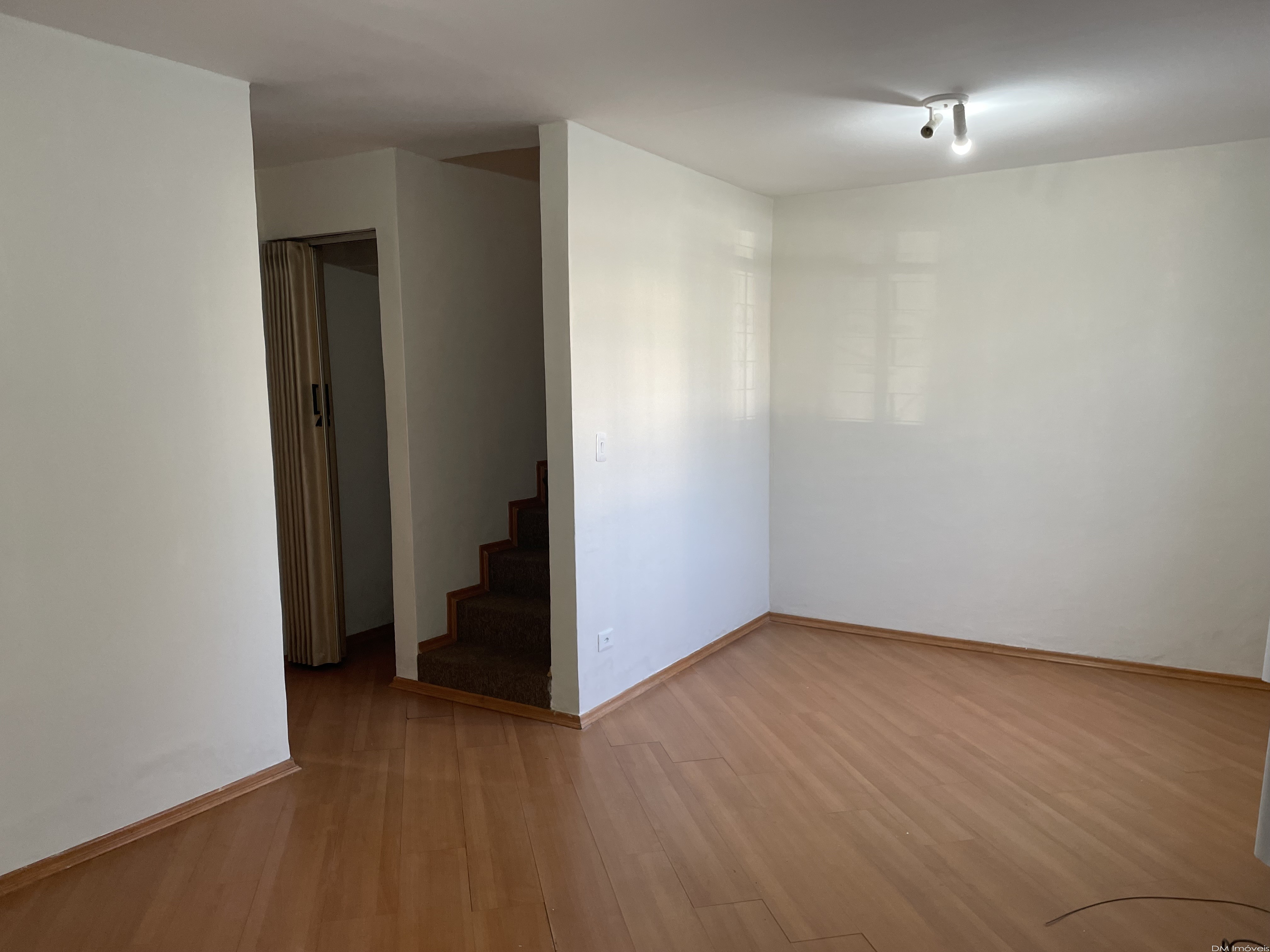 Parte Inferior: Sala, depósito (embaixo da escada), lavabo com armários,